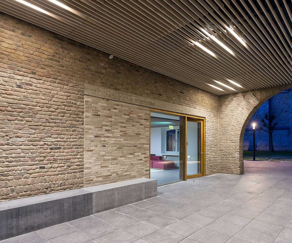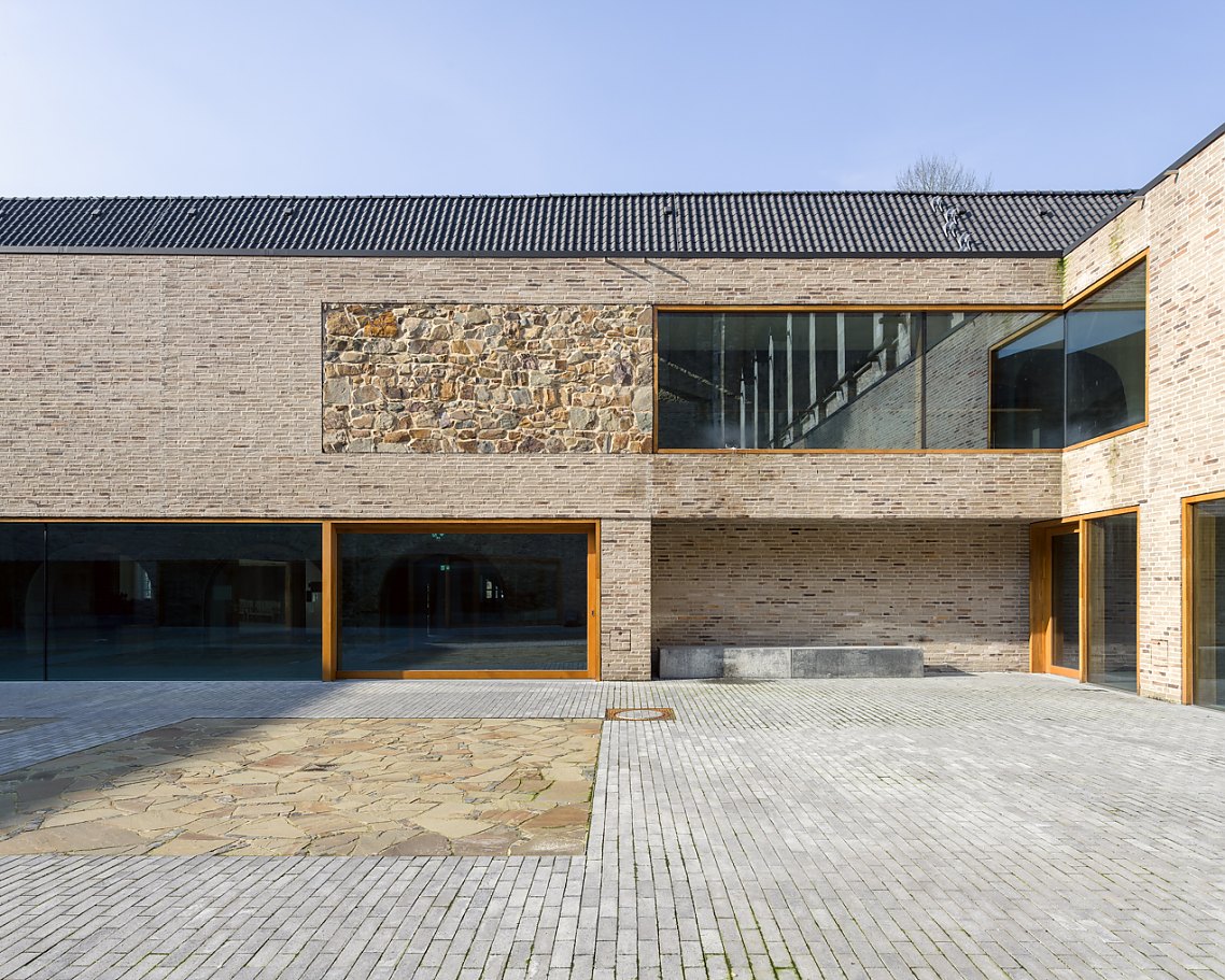 Die Steinsichtigkeit des Doms und weiterer Bestandsgebäude war ausschlaggebend dafür, dass auch die neue Bebauung in massiver Bauart aus Stein, Holz und Glas konstruiert wurde. Die helle Klinkerfassade orientiert sich in ihrer Farbe am Bestand und schließt historische Mauerteile mit ein. So gelingt es, das gesamte Ensemble einschließlich des Altenberger Doms zu einem homogenen Ganzen zusammenzufügen.