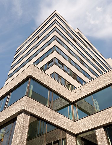 Die Neugestaltung der Frankfurter Diamantenbörse ist ein besonders gutes Beispiel für den Einsatz von Backstein im anspruchsvollen urbanen Bau, denn das Material passt einfach perfekt zum kreativen, nachhaltigen und verantwortungsbewussten Anspruch des Projektes MA*.