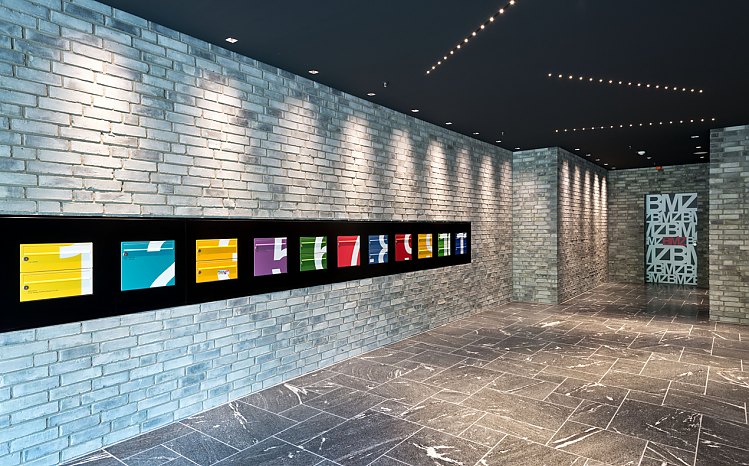 Innen wurde das Gebäude entkernt, neu geordnet und mit modernster Kommunikations- und Energietechnik ausgestattet. Dabei kamen nur nachhaltige, schadstofffreie und recycelbare Baumaterialien zum Einsatz, wie eine DGNB-Zertifizierung bestätigt. Neben der Funktionalität spielt natürlich auch im Innenbereich Design eine große Rolle. Logisch, dass man hier wieder auf Backstein trifft.
