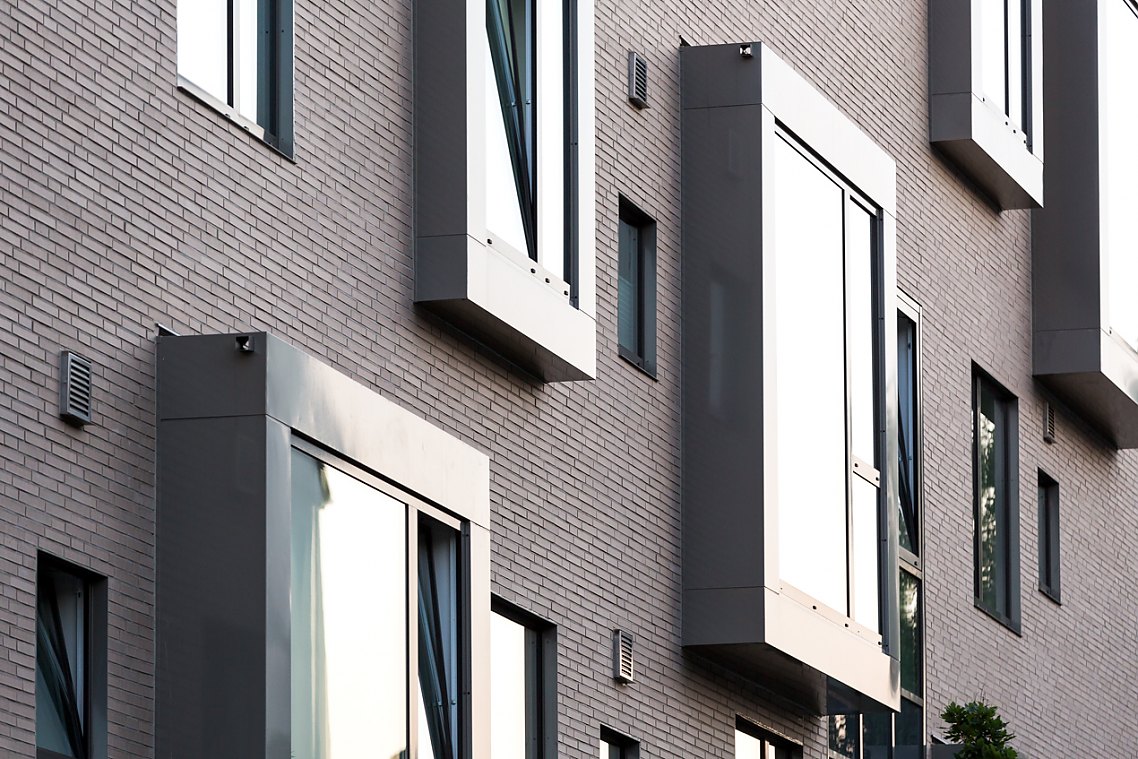 Die Entscheidung für eine Backstein-Fassade fiel nicht nur wegen ihrer Wertigkeit und Dauerhaftigkeit, sondern auch, um der vielfältigen Fassadengestaltung Solidität zu verleihen.