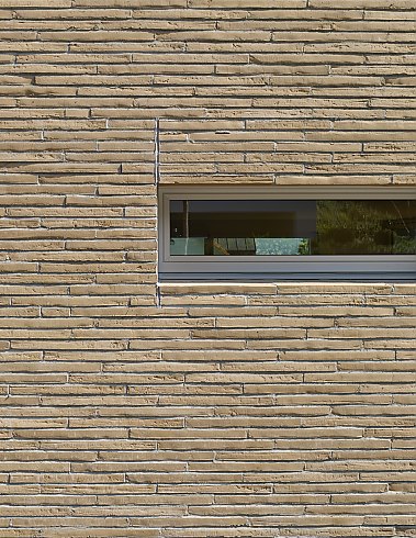 Mehr lesenSchnell fiel die Wahl auf den PETERSEN Kolumba Stein, den der Bauherr in seinem Beruf als Landschaftsarchitekt bereits bei Gartenprojekten kennen gelernt hatte. Die handgefertigten Steine bringen Leben in die Fassade. Ihr langes, schmales Format unterstreicht die horizontale Ausrichtung der Gebäudekubatur und verringert im Zusammenspiel mit den langen Bandfenstern optisch die Höhe des Gebäudes.