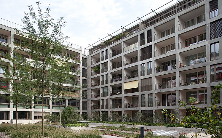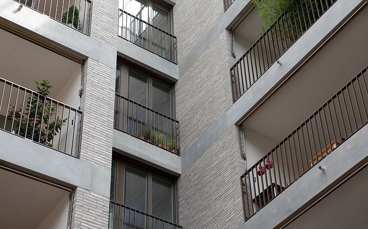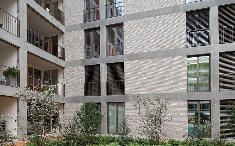 Mehr lesenNach fast 150 Jahren nimmt diese Vision mit den Ausdrucksmitteln moderner Architektur Gestalt an: Zwei neue sechs- bis sieben-geschossige Neubaukörper bilden mit zwei bereits existenten Wohngebäuden einen großen städtischen Innenhof, der durch einen weiteren fünfgeschossigen Baukörper unterteilt wird. Dadurch entsteht ein ruhiger, begrünter und lichtdurchfluteter Wohnhof, nach dem sich die meisten Wohn- und Arbeitsräume sowie Loggien orientieren.