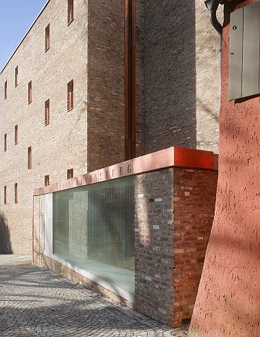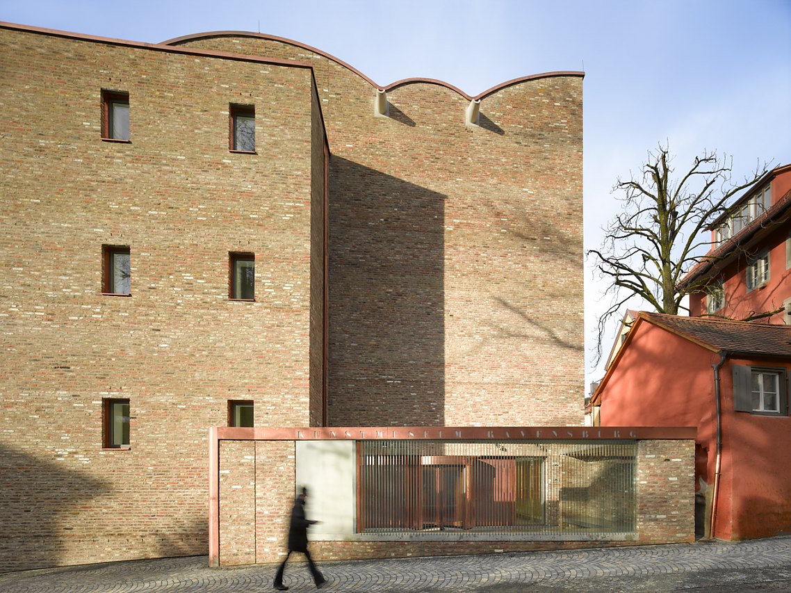 Mehr lesenDas Stuttgarter Büro Lederer Ragnarsdóttir Oei hat den Wettbewerb mit einem Grundriss gewonnen, der auf dem kleinen Grundstück eine maximale Ausstellungsfläche ermöglicht. Die daraus resultierende kompakte Gebäudeform hätte in ihrem Umfeld leicht problematisch werden können. Doch durch die Verkleidung mit der rauen, weitgehend geschlossenen Mauerwerksschale wirkt der Neubau geradezu „historisch“. Das Tonnendach und die Notentwässerung über Wasserspeier unterstreichen diesen Eindruck zusätzlich.
