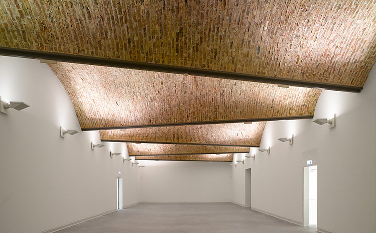 Die historischen Backsteine schmücken nicht nur die Außenfassade. Als Höhepunkt der Innenraumgestaltung tauchen sie an einem asymmetrischen Kappengewölbe im zweiten Obergeschoss nochmals auf. Hinter der fast mittelalterlich wirkenden Fassade verbirgt sich übrigens eine 24 cm starke, hinterlüftete Wärmedämmung. Auch im Haus gibt es weitere modernste Gebäudetechnik; denn trotz seiner geringen solaren Gewinne ist das Kunstmuseum Ravensburg das „erste Passivhaus-Museum weltweit“.
