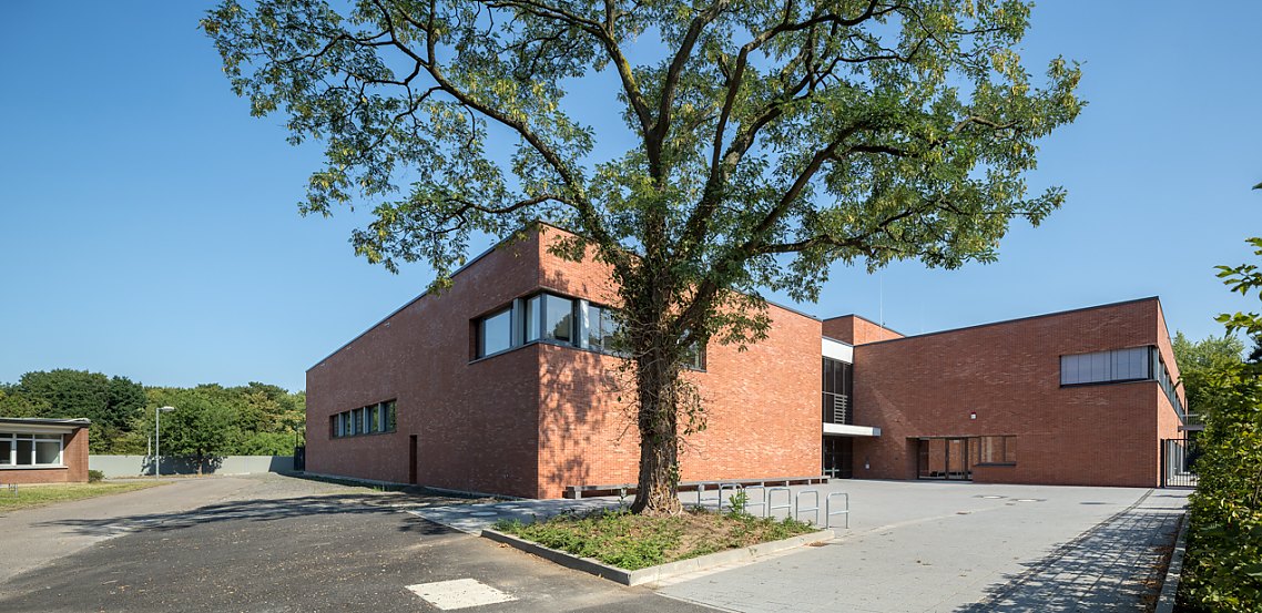Eine Grundschule, eine Turnhalle und eine Kita sollten auf dem dreiecksförmigen Grundstück in der Kölner Ottostraße Platz finden. Separat erschließbar und ohne gegenseitige Störungen. Dieser Aufgabe stellte sich der Entwurf mit einem integrierenden Schulkonzept, das alle Funktionen unter einem Dach anbietet.