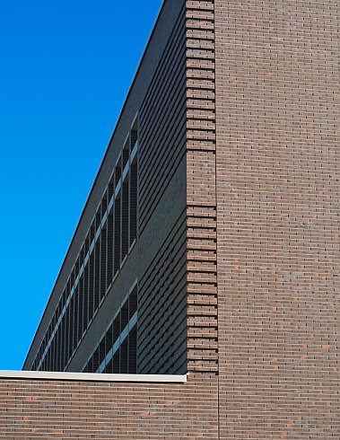 Mehr lesenZentrale Auswahlkriterien bei den Materialien für Fassade und Innenräume waren neben einer hohen ästhetischen Qualität auch Robustheit und Langlebigkeit. Kein Wunder, dass in beiden Fällen die Wahl auf Backstein fiel. Die Außenhaut des Gebäudes besteht im Wesentlichen aus einem dunklen, changierenden Klinker im Sonderformat. Die stringente lineare Optik wurde durch Verlegen im Stumpfstoßverfahren erreicht.