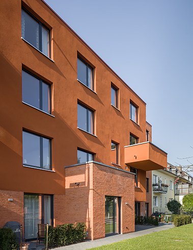 Der nachhaltige Qualitätsanspruch spiegelt sich auch in der Baustoffauswahl, z.B. der Terrakotta-Ziegelfassade mit mineralischer Dämmung und den Holz-Aluminium-Fenstern, sowie in der Energieversorgung mit Geothermie und Photovoltaik. Dauerhaft hohe Wohn- und Lebensqualität – das ist ein Ziel, zu dem Backstein einfach hervorragend passt.