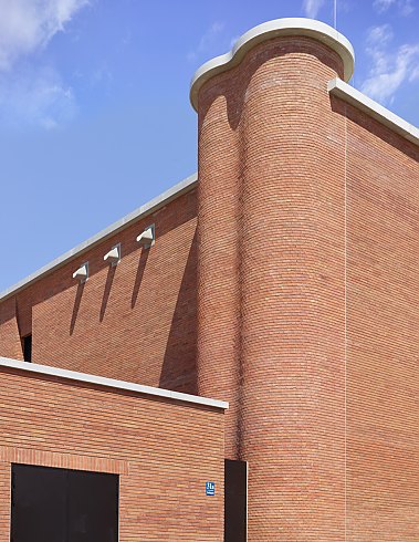 Nach dem Motto „Back to the roots“ zitiert der stranggezogene Stein die raue Optik jener Ziegel, die vor etwa hundert Jahren erstmals maschinell hergestellt wurden. Seine rote Farbe orientiert sich am historischen Bestand. Die kaltgestoßene Verarbeitung des Ziegels ohne Vermörtelung der Kopffuge unterstreicht die dynamische, horizontale Ausrichtung der Architektur.