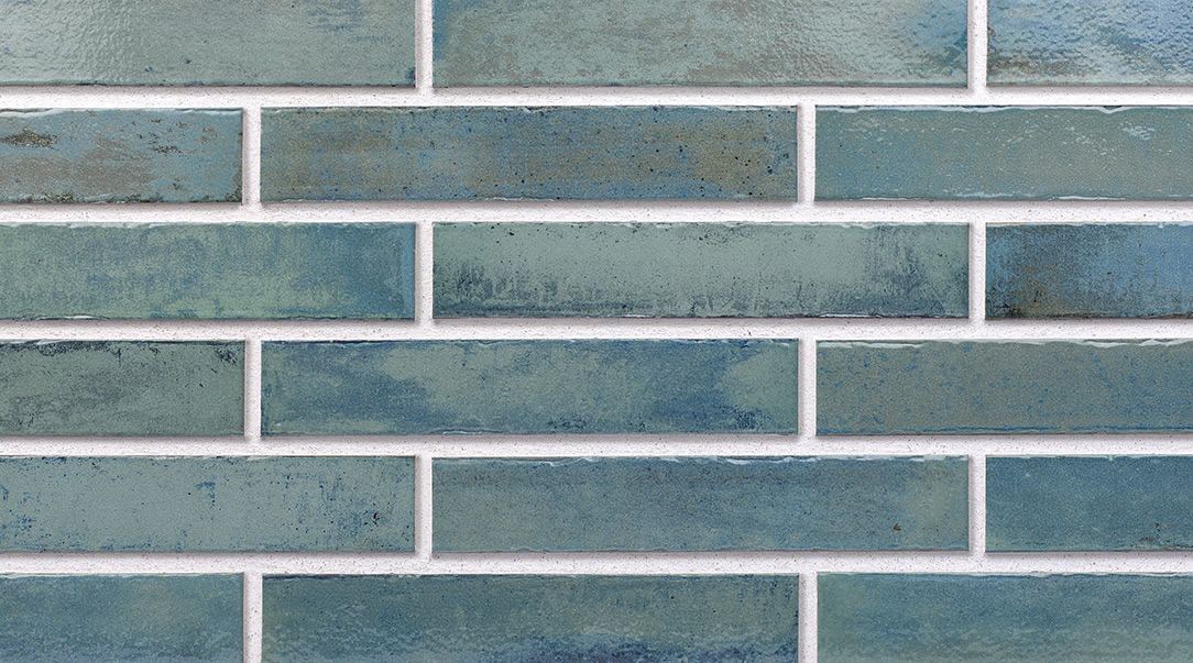 Die Kollektion präsentiert sich in ungewöhnlichen, kühl-eleganten Farben und umfasst auch eine Reihe von Riemchen in ganz neuen Grün- und Olivtönen. Diese bisher nicht gesehenen Farbnuancen sprechen moderne, aufgeschlossene Bauherren an und spiegeln perfekt das gestiegene Natur- und Umweltbewusstsein wieder. Die ästhetische Aussage der Kollektion wird durch ihre dezente, reduzierte Materialität mit glatten, scharfen Kanten und einer zurückhaltend strukturierten Oberfläche unterstrichen.