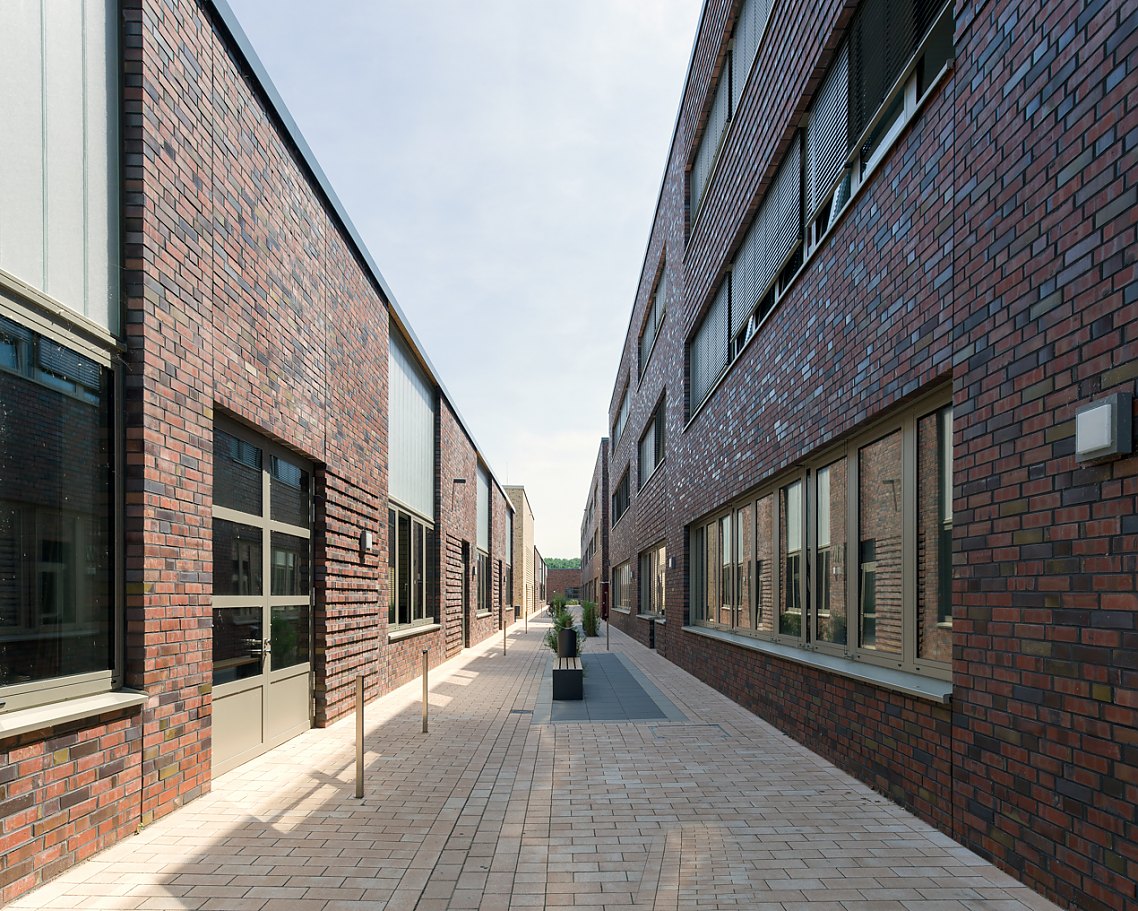 Erklärtes Ziel der Planer war es, eine Architektur mit prägender Gestalt und ohne modische Vergänglichkeit zu entwickeln. Dabei spielen die Fassadenflächen aus kohlegebrannten Ziegelsteinen eine wichtige Rolle. Backstein als gemeinsames Fassadenmaterial verbindet die Gebäude und gibt dem Ensemble einen qualitätvollen und dauerhaften Charakter, der lokal verwurzelt und zeitgemäß zugleich ist.