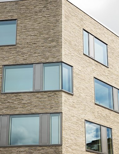 Die Materialwahl gestaltete sich recht einfach, denn der Bauherr war derselbe wie beim Diözesanmuseum „Kolumba“, für das die dänische Ziegelei Petersen den inzwischen schon legendären Kolumba-Stein entwickelt hat. Die Begeisterung für die Ziegel ist nach wie vor ungebrochen, so dass schon sehr früh feststand: Für die Fassade des Erzbischöflichen Berufskollegs kommen nur Steine von Petersen in Frage.