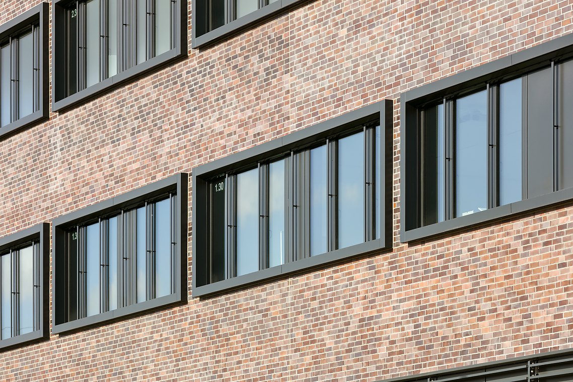 Ausschlaggebend für die Wahl des Backsteins war hier der Nachhaltigkeitsaspekt. Die Klinkerfassade hält dauerhaft über den gesamten Lebenszyklus der Gebäudehülle. Anders als Putz-Verbundsysteme erfordert sie keine kurzzeitigen Wartungs- und Instandhaltungsintervalle. So entfallen Anstricharbeiten, die bei Außenputz insbesondere an stark befahrenen Straßen regelmäßig erforderlich sind.