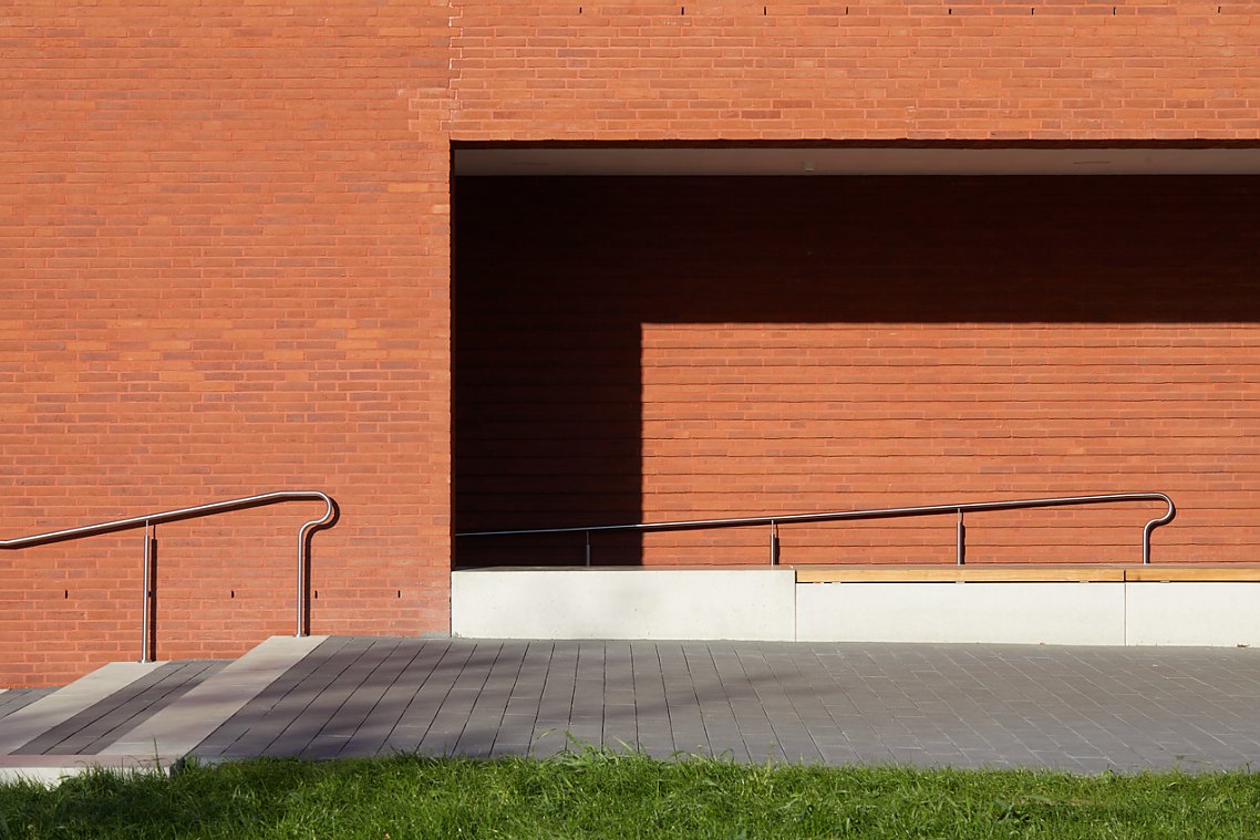 Auch die Wahl des Fassadenmaterials selbst ergibt sich aus der vorhandenen Bebauung: Die Bestandsschule und die Sporthalle haben eine rote Klinkerfassade. Diese greift auch der Neubau auf – allerdings mit einer anderen Fugenfarbe. Die roten Fugen verleihen der Fassade einen eigenständigen Ausdruck und eine moderne Anmutung.