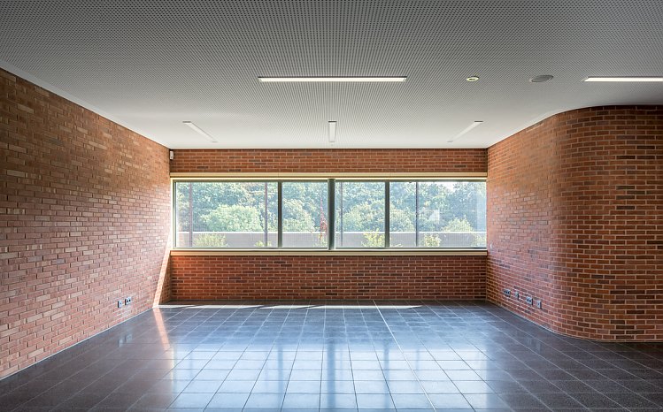 Die warmroten Ziegel der Außenfassade finden sich auch im Innenbereich wieder, wo sie mit hell gestrichenen, ruhigen Wandflächen kontrastieren. In diesem schulischen Umfeld punktet Backstein mit vielen Vorteilen: Er ist robust, langlebig und wartungsfrei und verleiht dem Gebäude gleichzeitig Wertigkeit und Geborgenheit.