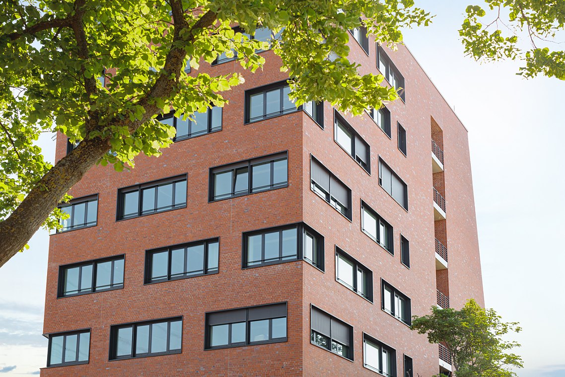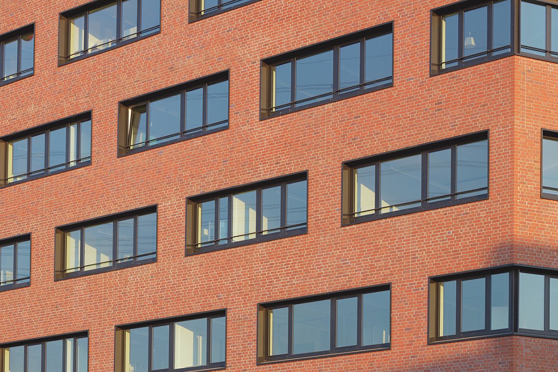 Es kommt der für Hafenbauten typische rote Backstein zum Einsatz, der eine Verbindung zum Umfeld schafft und die Geschichte des Ortes fortschreibt. Das vertraute Material sorgt dafür, dass sich die neuartige Form auf selbstverständliche Weise einfügt.