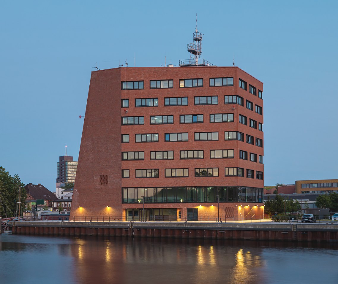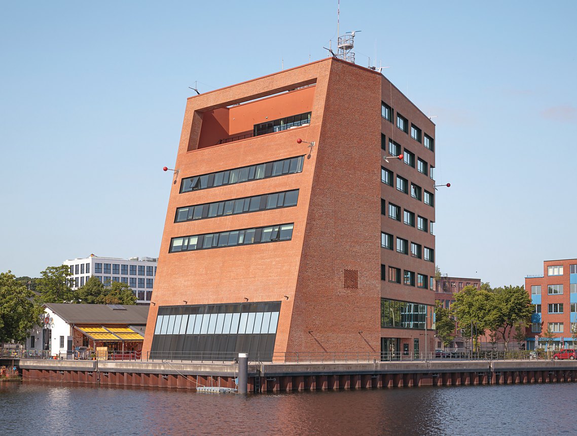 Im Hafen Hamburg-Harburg ist am Brückenkopf des Lotsenkanals an städtebaulich exponierter Stelle ein sehr markantes Gebäude entstanden. Es beherbergt eine renommierte deutsche Forschungseinrichtung, die sich hier – passend zum Standort – mit maritimer Logistik befasst.