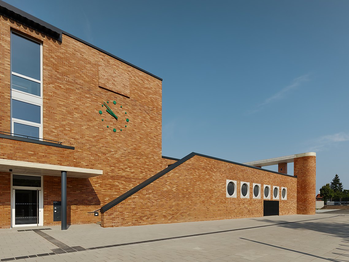 Die Architekten entschieden sich für einen klassisch roten Ziegel, da er am besten das Bild des Gewohnten und dennoch Neuen transportiert. Daneben gab es aber auch ganz praktische Gründe für den Backstein: Er ist robust, dauerhaft sowie kostengünstig und somit einfach ideal für einen hochbeanspruchten Schulbau.