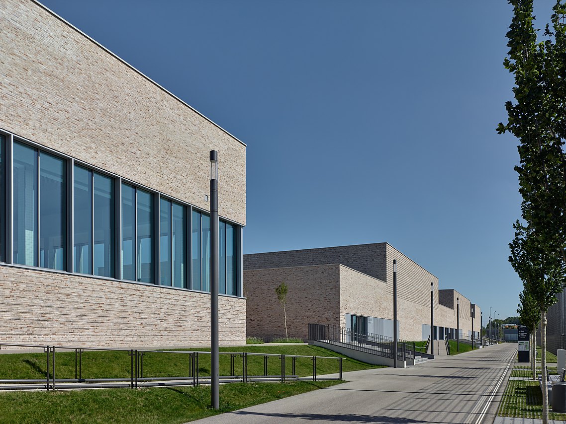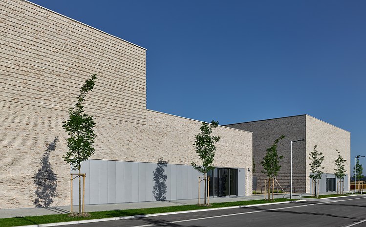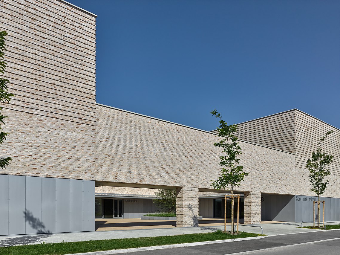 Mehr lesenDas zweite prägende Element ist der formale Zusammenhalt durch das Material Backstein. Ein changierender beiger Vormauerklinker dient sowohl als Fassadenmaterial als auch als Pflaster für die Plätze – ein alles verbindendes Backsteinkleid für einen Sportpark, der durch seine Inklusivität nicht nur Sport-, sondern auch Begegnungsstätte für ganz unterschiedliche Menschen ist.