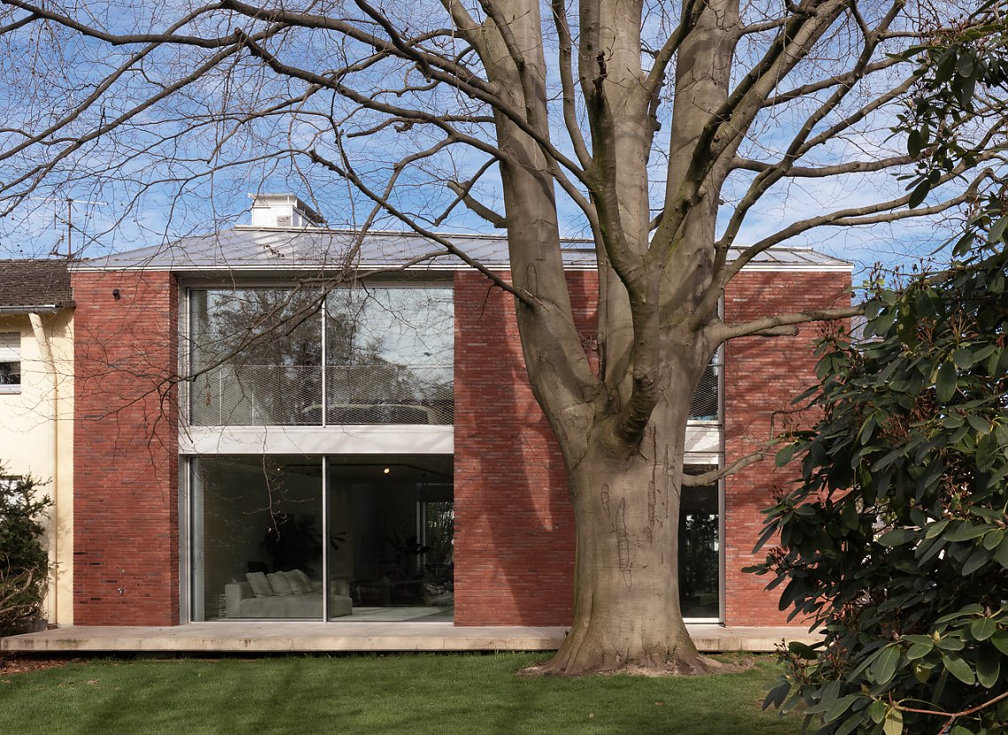 Der Erhalt der Blutbuche war eine gute Entscheidung und dank der behutsamen Architektur bilden der alte Baum und das neue Backsteinhaus ein wunderbares Ensemble, das eine ganz besondere Wohnqualität bietet.