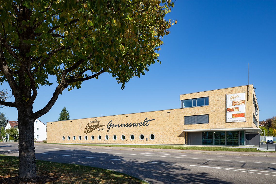 Mit ihrer mehr als 100-jährigen Geschichte ist die Confiserie Bosch in Uhingen ein echtes Traditionsunternehmen, das für handgefertigte Produkte in Premiumqualität steht. Diesen Anspruch spiegelt auch der Neubau der Confiserie wider. Er ist als Manufaktur mit gläserner Produktion und repräsentativen Verkaufsräumen konzipiert.
