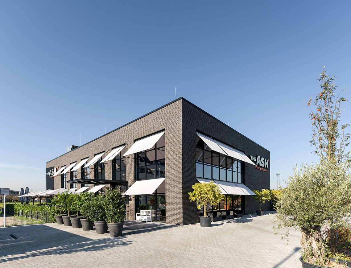 Das Fassadenkonzept setzt sich auch innen mit schwarzgrauen Ziegelwänden fort, die gemeinsam mit den für den Innenraum verwendeten Materialien Holz, Stahl und Leder eine sinnlich-raue Wohlfühlatmosphäre schaffen. So wird „The ASH“ durch seine Architektur in Verbindung mit hochwertigem Essen und Trinken zu einem Gesamterlebnis für seine Gäste.