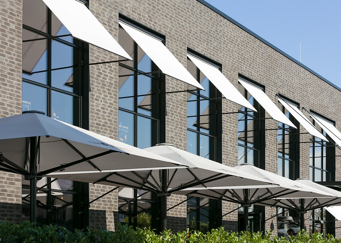 Mehr lesenPassend zum gastronomischen Konzept lehnt sich die äußere und innere Gestaltung des Baukörpers stark an die Industriearchitektur der 20er Jahre an. Neben den großen Glasflächen, die wie eine zeitgemäße Interpretation typischer Fabrikfenster wirken, gehört zu dieser Architektursprache natürlich unbedingt eine Backstein-Fassade. Die Farbwahl des Steins ist eine Anspielung auf das englische Wort „ash“.