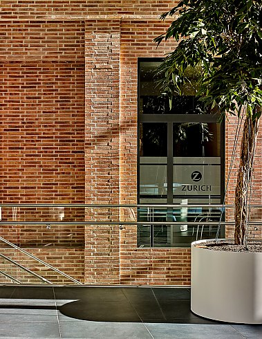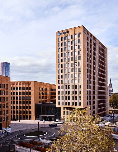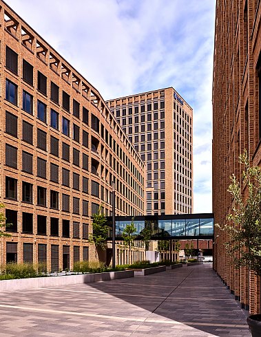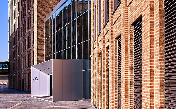 Mehr lesenFür das Gebäudeensemble im westlichen Teil mit der Zurich Gruppe als Hauptmieter hat das Backstein-Kontor eigens neue Riemchen und besondere Mörtelfarben entwickelt.