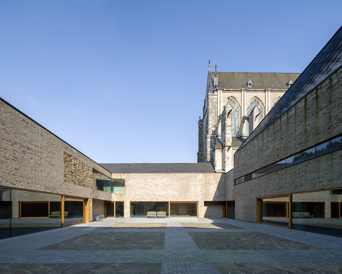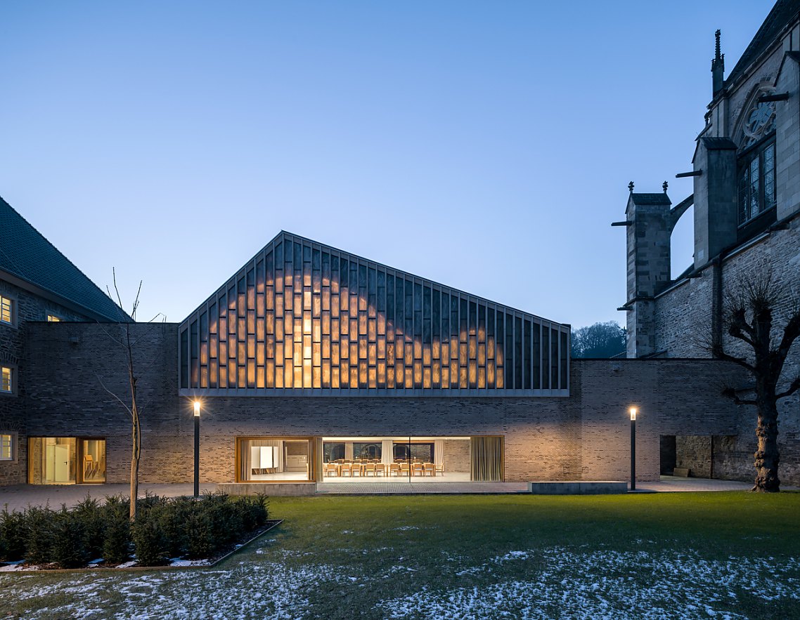 Die Steinsichtigkeit des Doms und weiterer Bestandsgebäude war ausschlaggebend dafür, dass auch die neue Bebauung in massiver Bauart aus Stein, Holz und Glas konstruiert wurde. Die helle Klinkerfassade orientiert sich in ihrer Farbe am Bestand und schließt historische Mauerteile mit ein. So gelingt es, das gesamte Ensemble einschließlich des Altenberger Doms zu einem homogenen Ganzen zusammenzufügen.