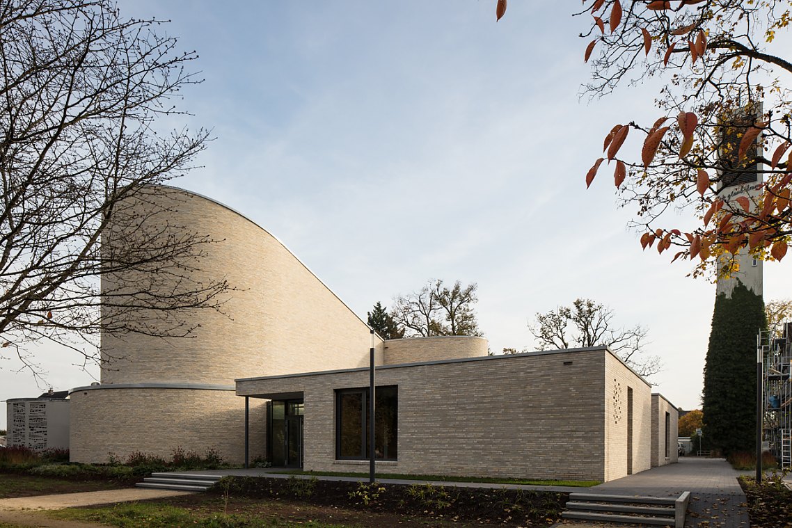 Die Erlebnis-Kirche St. Johannes der Täufer ersetzt eine vorhandene Kirche, wobei das 1963 errichtete Baptisterium sowie der freistehende Glockenturm erhalten bleiben. Mit einem gemeinsamen Eingang von Gemeindezentrum und Kirche, dem flexibel teilbaren Kirchenraum und dem Konzept der „leeren Kirche“ beschreiten die Architekten hier neue, experimentelle Wege.