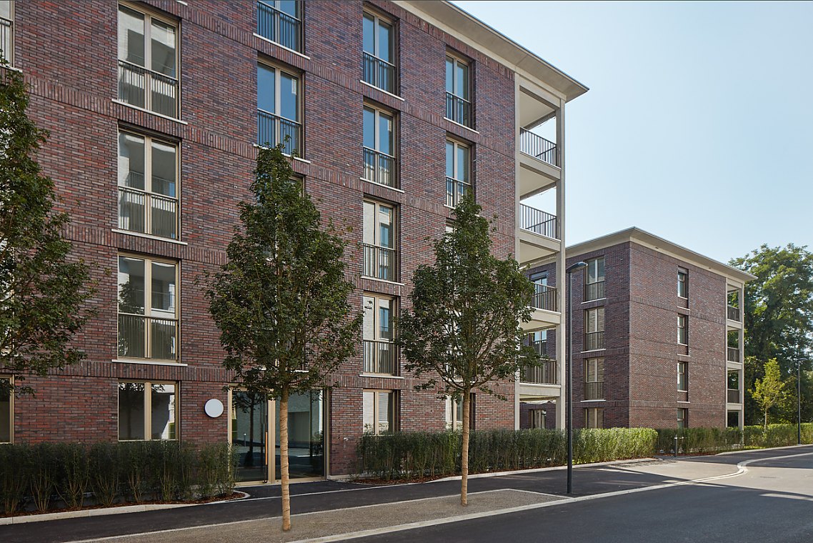 Der lebendige rotbraun changierende Backstein schafft hier einen Bezug zur industriellen Vergangenheit des Quartiers und sorgt zugleich für ein hochwertiges, einladendes Wohnumfeld.