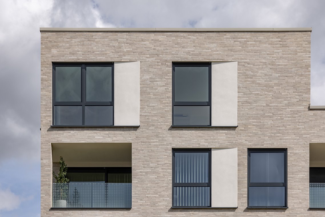 Die Verbundenheit zur Natur zeigt sich auch im Materialkonzept, das mit einer Kombination aus Klinkerriemchen und Fassadenplatten in Holzoptik auf warme, natürliche Farben und Texturen setzt. Die hellen Klinkerriemchen überzeugen nicht nur ästhetisch, sondern bieten auch eine langlebige, pflegeleichte und umweltfreundliche Lösung. Ein besonderes Highlight sind die individuell bedruckten Klinkerriemchen mit dem Schriftzug „Pandion“, die eine einzigartige Note setzen.