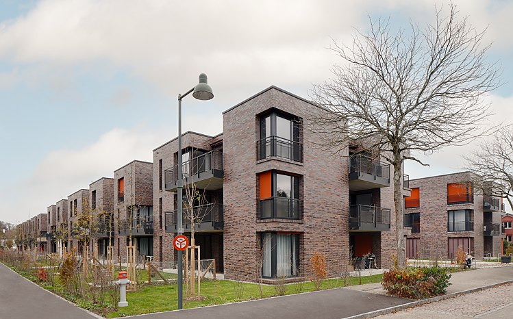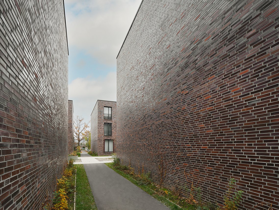 Mehr lesenDie Wohnbebauung nimmt die vorhandene Siedlungsstruktur auf und setzt sie neu um: Die vier Baukörper liegen in der Mitte der Parzelle und sind von individuellen Gärten umgeben. Zwischen beiden Zeilen spannt sich eine Quartiergasse auf, die der Erschließung dient und Raum für Begegnungen schafft. Jede der Wohnungen verfügt über einen privaten Außenraum zur Gartenseite und einen Küchenbalkon zur Gasse. Neben einem Mobilitätskonzept und der Energieerzeugung über Erdwärmepumpen trägt die massive Konstruktion mit einem zweischaligen Klinkermauerwerk zur Nachhaltigkeit bei.