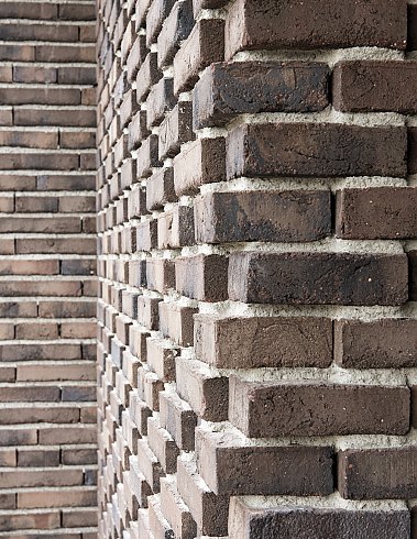 Dieser wird unterstrichen durch ein Versatzmuster aus Ziegelsteinen, das Materiallust verbreitet und ein Zeichen für gepflegte Handwerkskunst setzt. Damit trägt der Backstein dazu bei, ein Quartier von hoher Qualität zu schaffen, in dem man sich wohlfühlen kann.