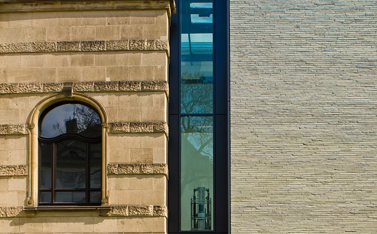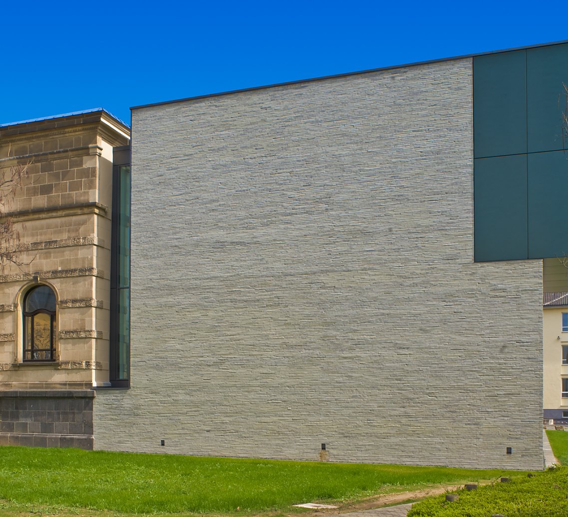 Mehr lesenEntsprechend groß war die Verantwortung des planenden Architekten Professor Peter Kulka. Sein Erweiterungsbau setzt durch einen puristischen Kubus mit einer Backstein-Fassade und Details aus Stahl und Glas einen bewussten Kontrast zur prächtigen Gestalt des Ursprungsgebäudes. Durch die feine Abstimmung der Proportionen und Materialien gelingt die Kunst, Neues mit Altem zu verbinden.
