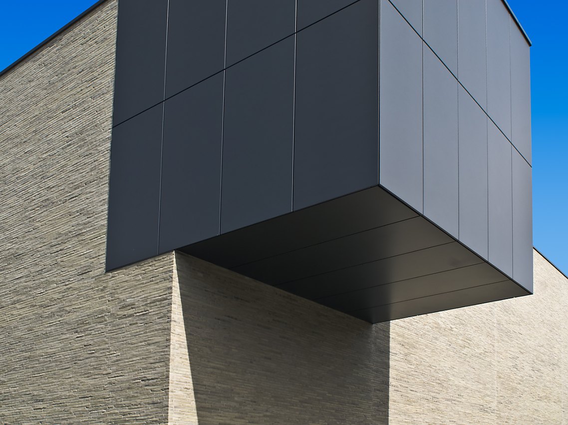 Das lebendige, helle Farbenspiel der Fassade aus Kolumba K51 Steinen der dänischen Ziegelei Petersen harmoniert hervorragend mit der Stofflichkeit der alten Sandsteinfassade und setzt ein wichtiges Thema weiterer historischer Gebäude der Stadt fort. Auch in der Stadtmauer und der Marienkirche sind Natursteine und Backsteine kombiniert.