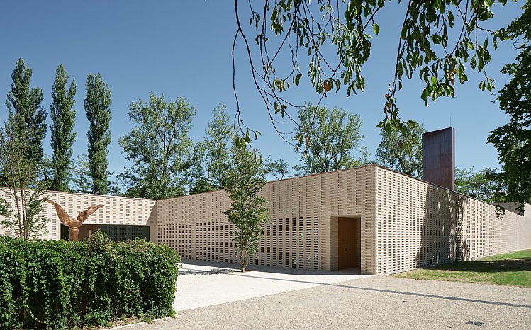 Anschließend wurden anhand eines großformatigen Mock-ups Fugen, Farbigkeit und Formate final eingestellt. Im Zusammenspiel aus anspruchsvoller Architektur, sorgfältiger Materialwahl und einer exzellenten handwerklichen Arbeit mit hohem Qualitätsethos ist ein sehr stimmiges Ensemble entstanden, das den geeigneten Rahmen für einen Abschied in Würde bietet.