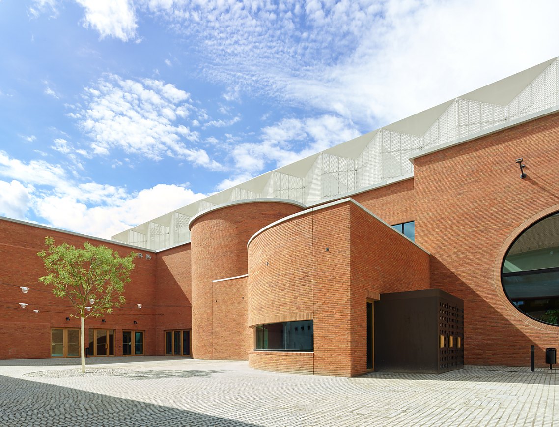 Mehr lesenFür das Stuttgarter Architekturbüro Lederer Ragnarsdóttir Oei war das Volkstheater München die Premiere im Bereich Theaterneubau. Und an der ausdrucksstarken roten Ziegelfassade feiert ein vom Backstein-Kontor Köln eigens für das Projekt entwickelter Stein seine Premiere. Das Backsteinkleid des neuen Volkstheaters ergab sich fast zwangsläufig. Ziegel prägen das Bild der Industriearchitektur-Bestandsbauten aus den 1920er Jahren. Mit seiner Ziegelfassade schreibt der Neubau die Geschichte des Ortes auf eigene Weise fort.
